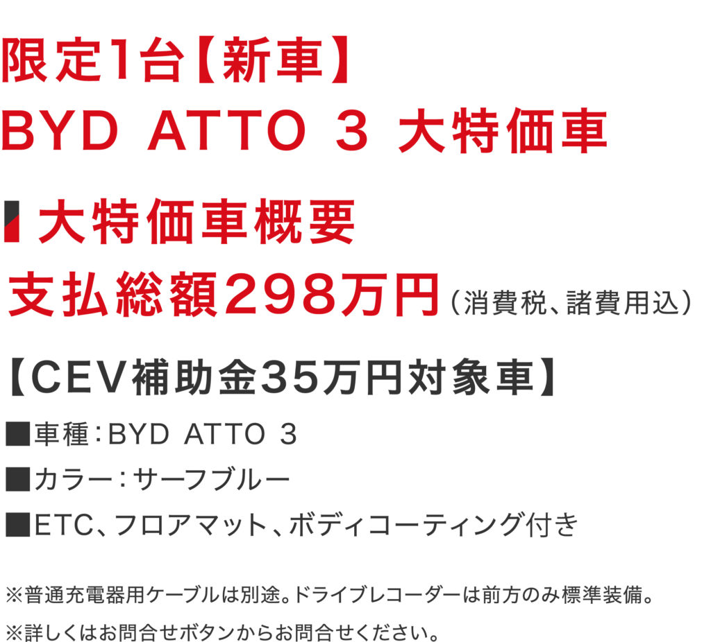 限定1台(新車)BYD ATTO 3 大特価車